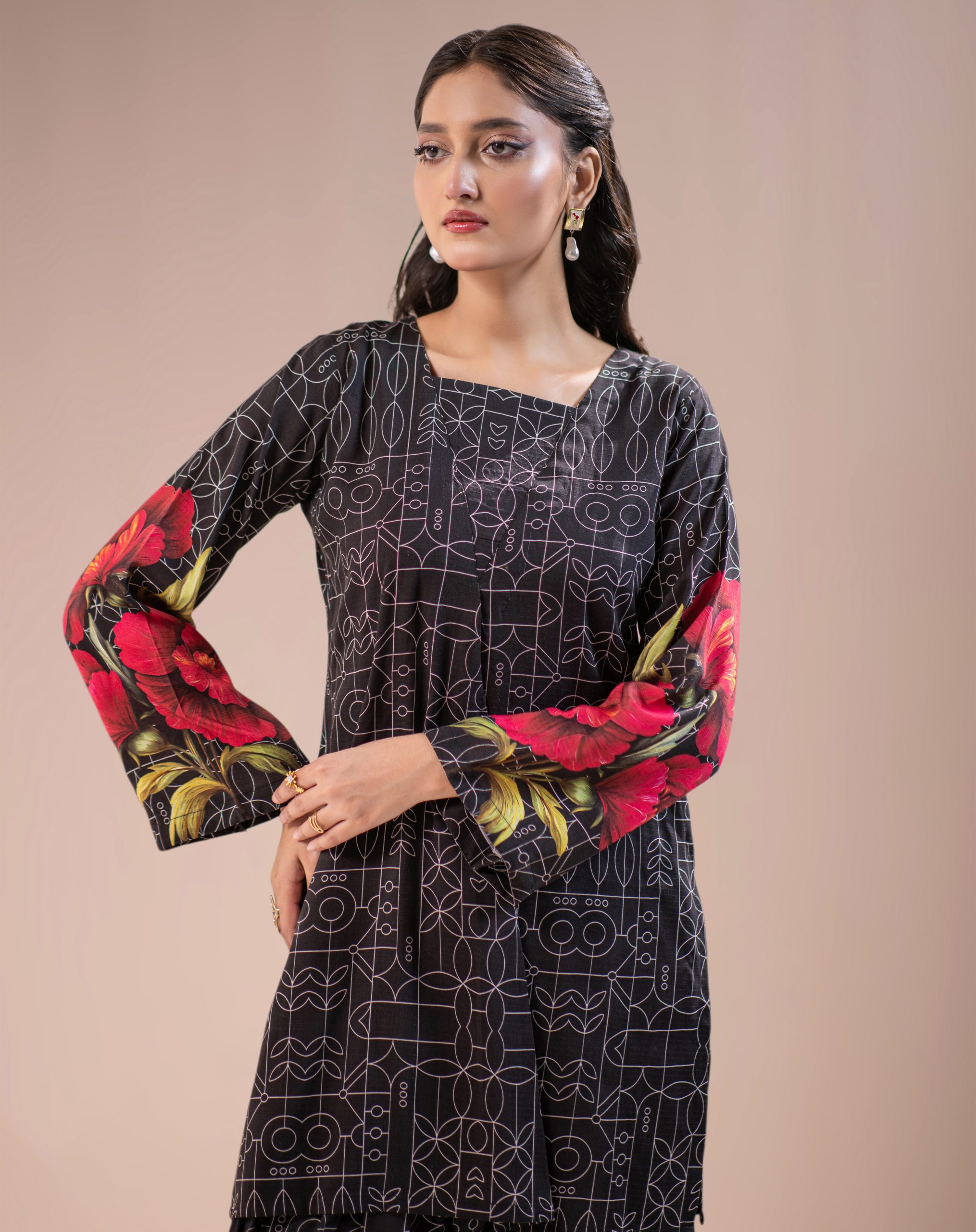 2 PCS | Tunique et un pantalon assorti. La coupe droite et fluide assure une silhouette équilibrée, idéale pour un usage quotidien.