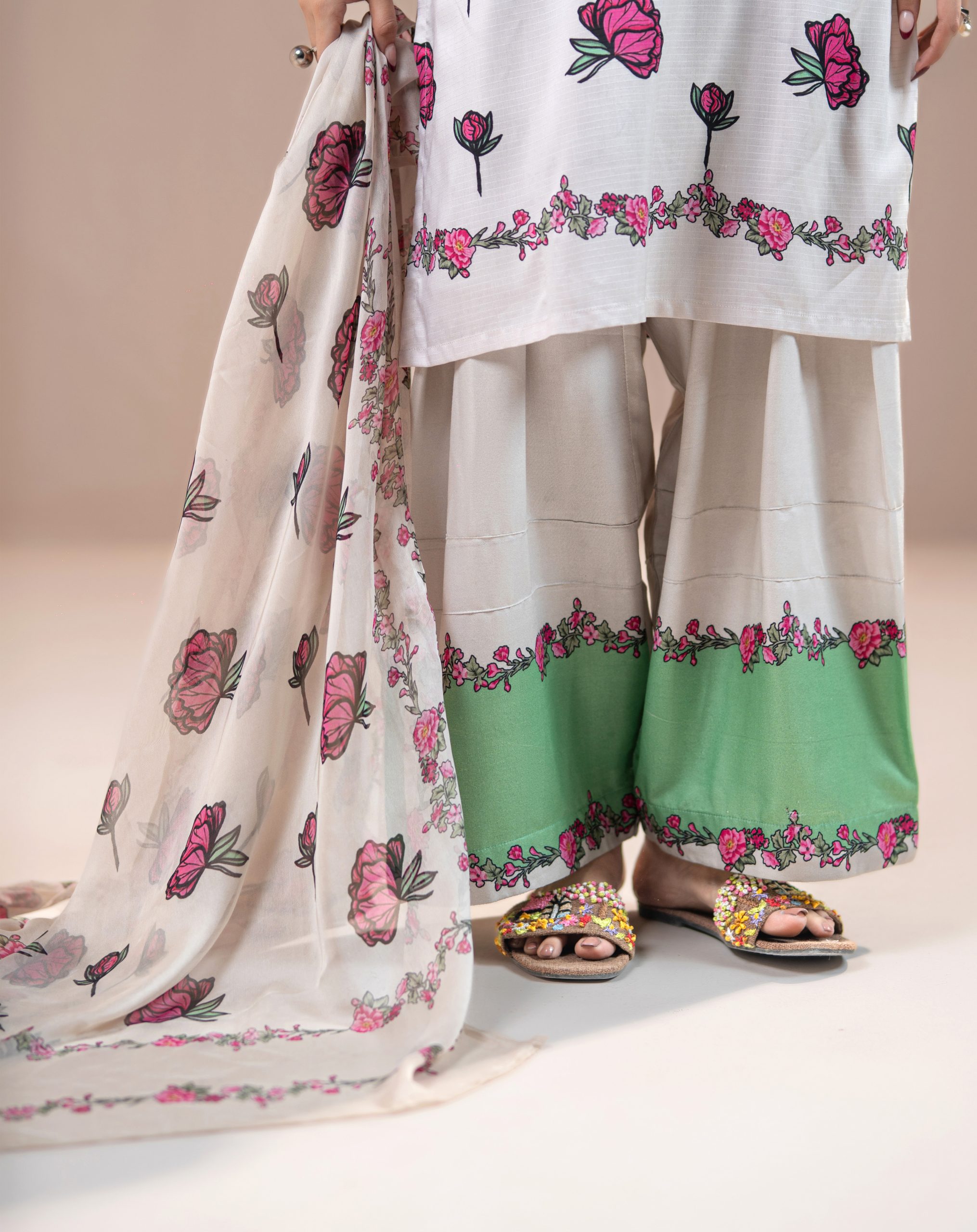 3 PCS | Ensemble comprenant une tunique, un pantalon shalwar et un dupatta assorti. L’ensemble crée une allure harmonieuse tout en restant facile à porter.