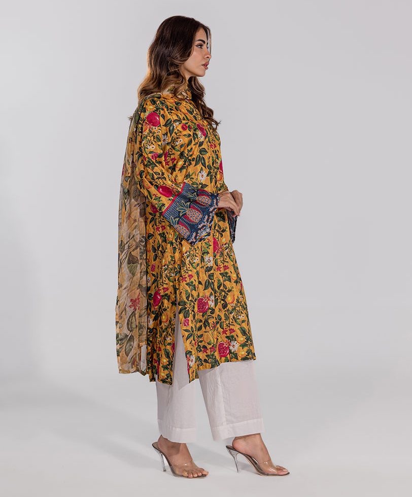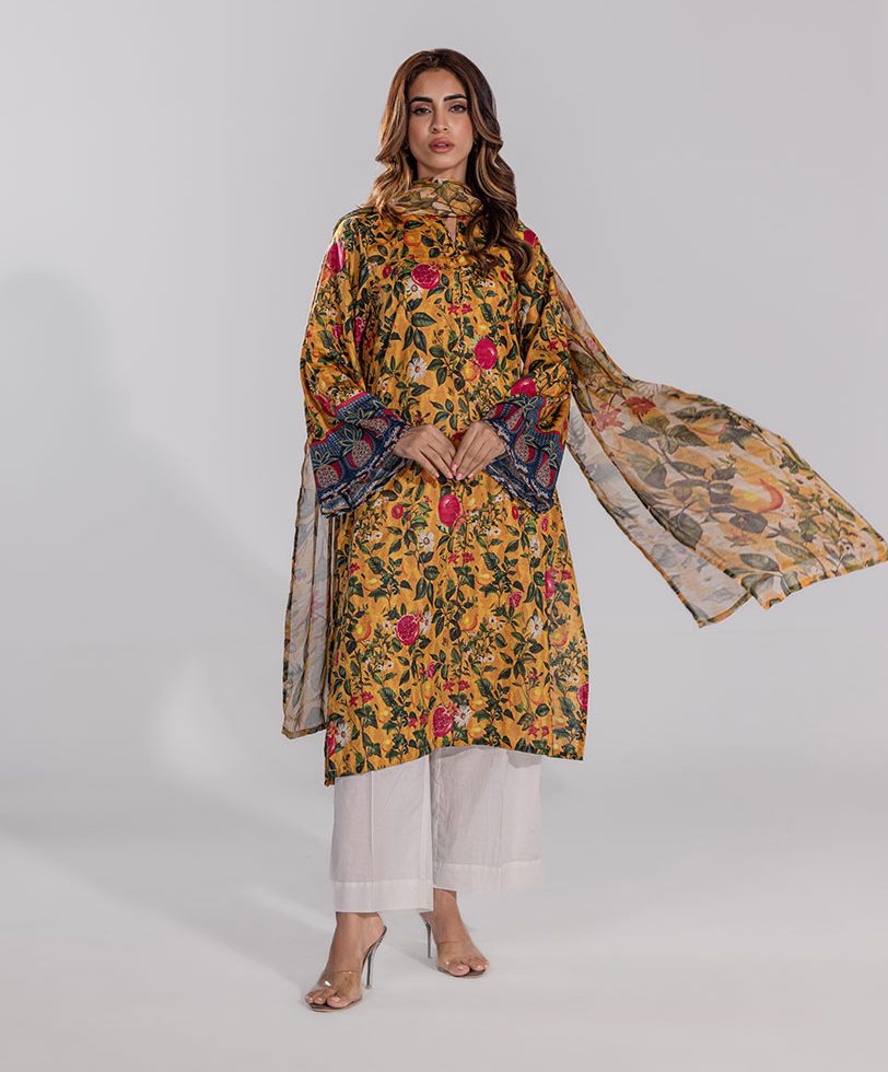 3 PCS | Ensemble aux motifs fleuris, un pantalon et un dupatta.