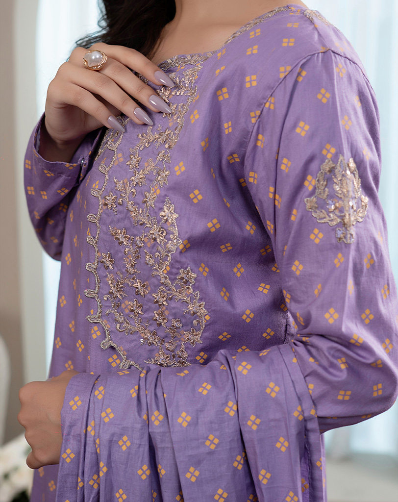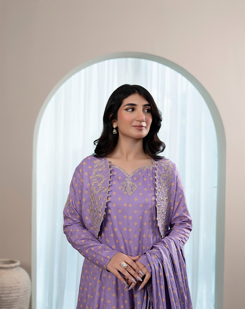 4 PCS | Pensée pour les célébrations de l’Eid, la collection Rangreza de OneMillionDRESS met à l’honneur des tissus imprimés spécialement pour la marque, développés dans notre atelier.