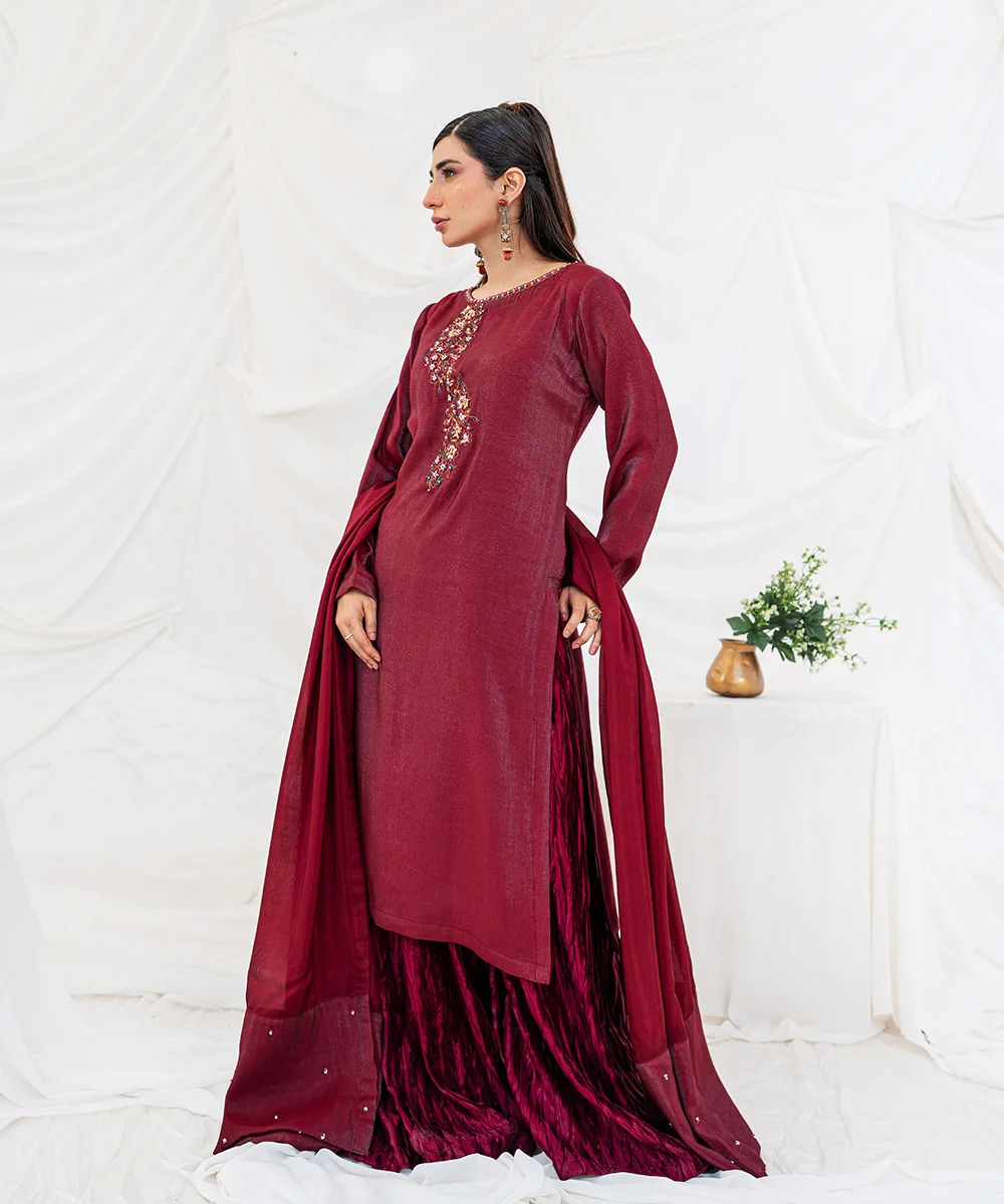 Dupatta fabric / color : Silk Chiffon / Rouge Bordeaux