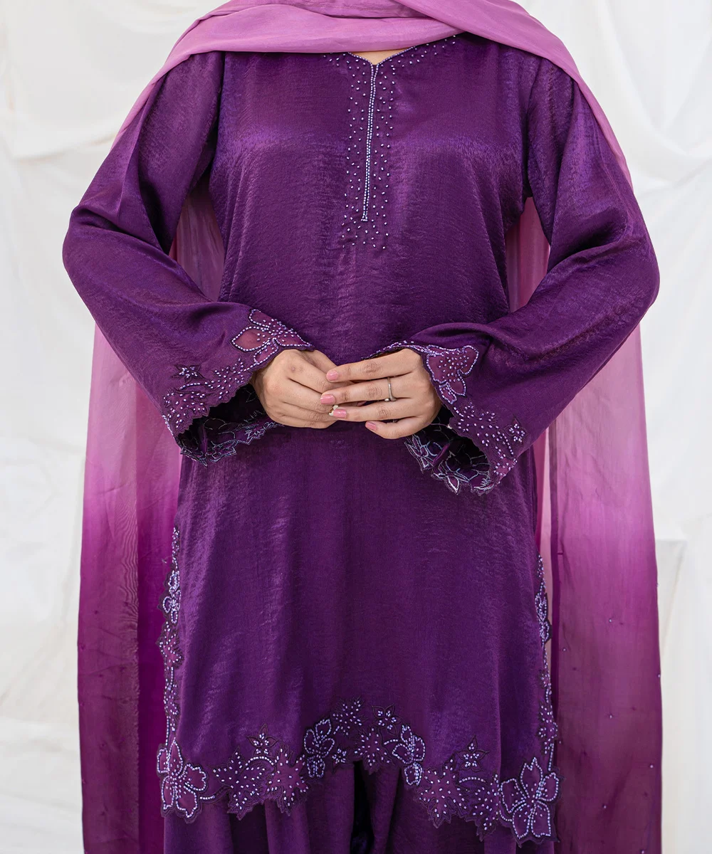 Pensée pour Eid et les grandes occasions, cette création allie richesse du velours soyeux, finitions artisanales et coupe contemporaine.